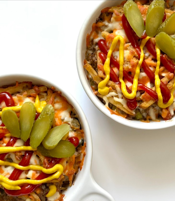 This recipe creates a comfort food dish inspired by poutine, combining cooked French fries, seasoned ground meat, and cheese. After preparing the meat mixture with onions and spices, it is layered with fries and baked until hot and bubbly. It’s perfect for individual servings or a larger casserole, serving 4-6.