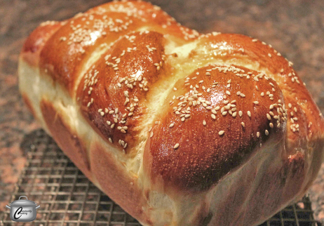 - Separate the remaining egg, keeping yolk only. Beat yolk and thin it with a very little bit of water then brush a generous amount over the loaf. Sprinkle with sesame seeds.
