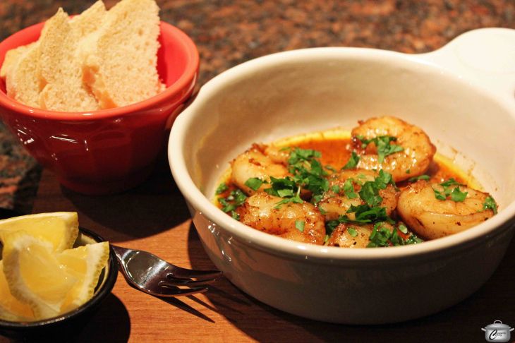- Serve shrimp with lemon wedges and small slices of baguette; invite guests to scoop up the shrimp and sauce onto the pieces of bread.
