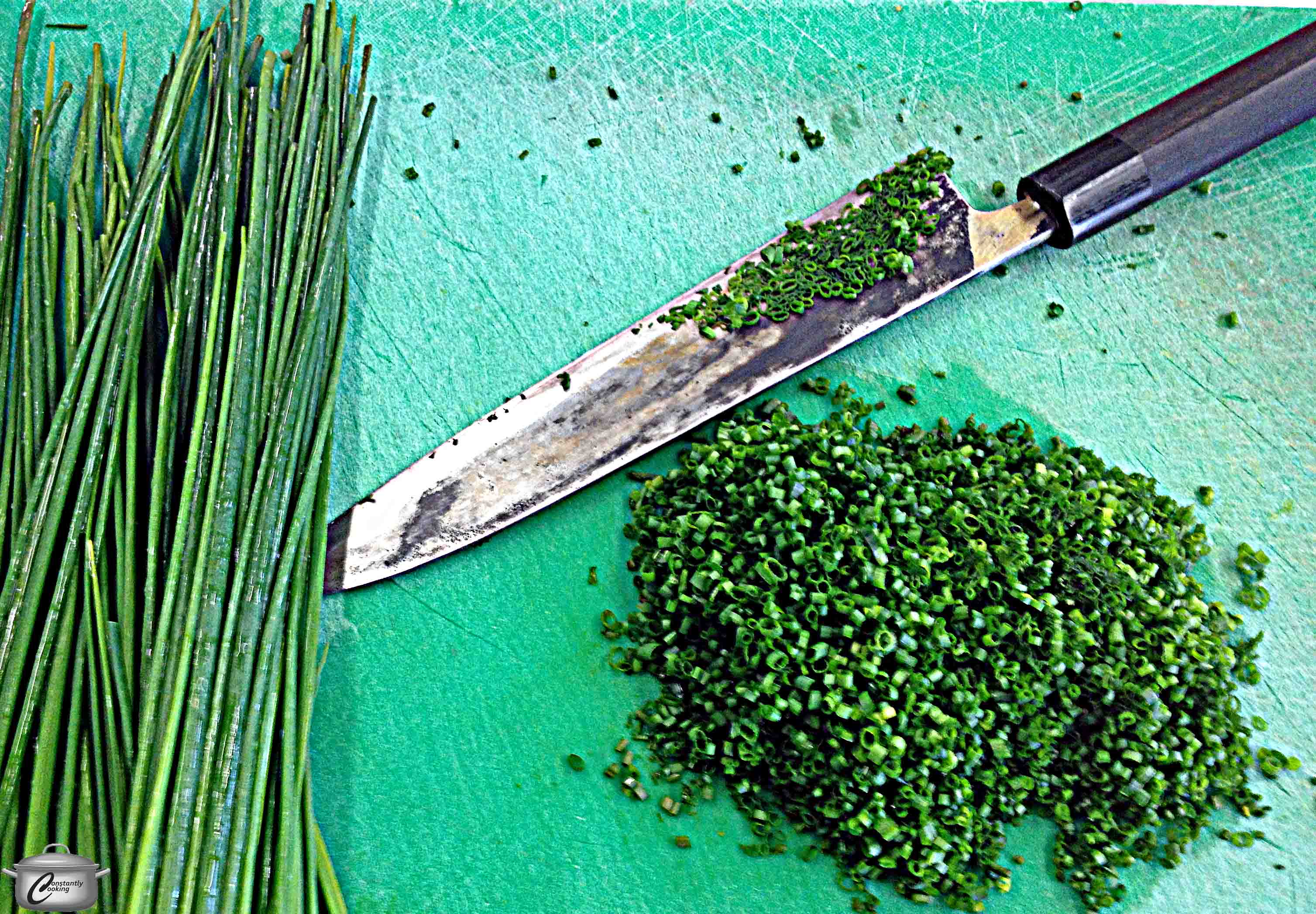 Apron in hand, I confess to being both excited and a bit nervous when I stepped into the kitchen. Did I mention that I had a couple of bandaids tucked in my back pocket, just in case? Thankfully, I didn’t need them, although I did develop a good-sized blister from chopping herbs for a couple of hours. I’d like to blame the unfamiliar knife, but I know it was really my less-than-perfect technique. The herbs were a lesson in themselves. When Chef Michael Hay said ‘small’, I didn’t realize he meant ‘almost impossibly small’. You can imagine my shame when he looked at my first batch of chopped chives, smilled, shrugged, and tossed them out. I learned a really important lesson: if you’re not sure what Chef wants, get him to demo it first. The other important lesson: I am NOT a fast chopper, compared to the pros.