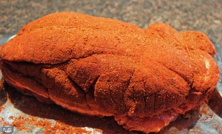 - Rub the meat liberally with the dry rub and let sit at least 30 minutes or up to 4 hours in the refrigerator.