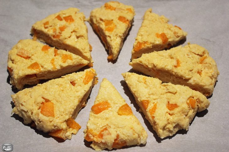 - Bake in the lower third of the oven for 12 – 14 minutes, until the tops are beginning to turn golden and a toothpick inserted into the thickest part of a scone comes out clean.