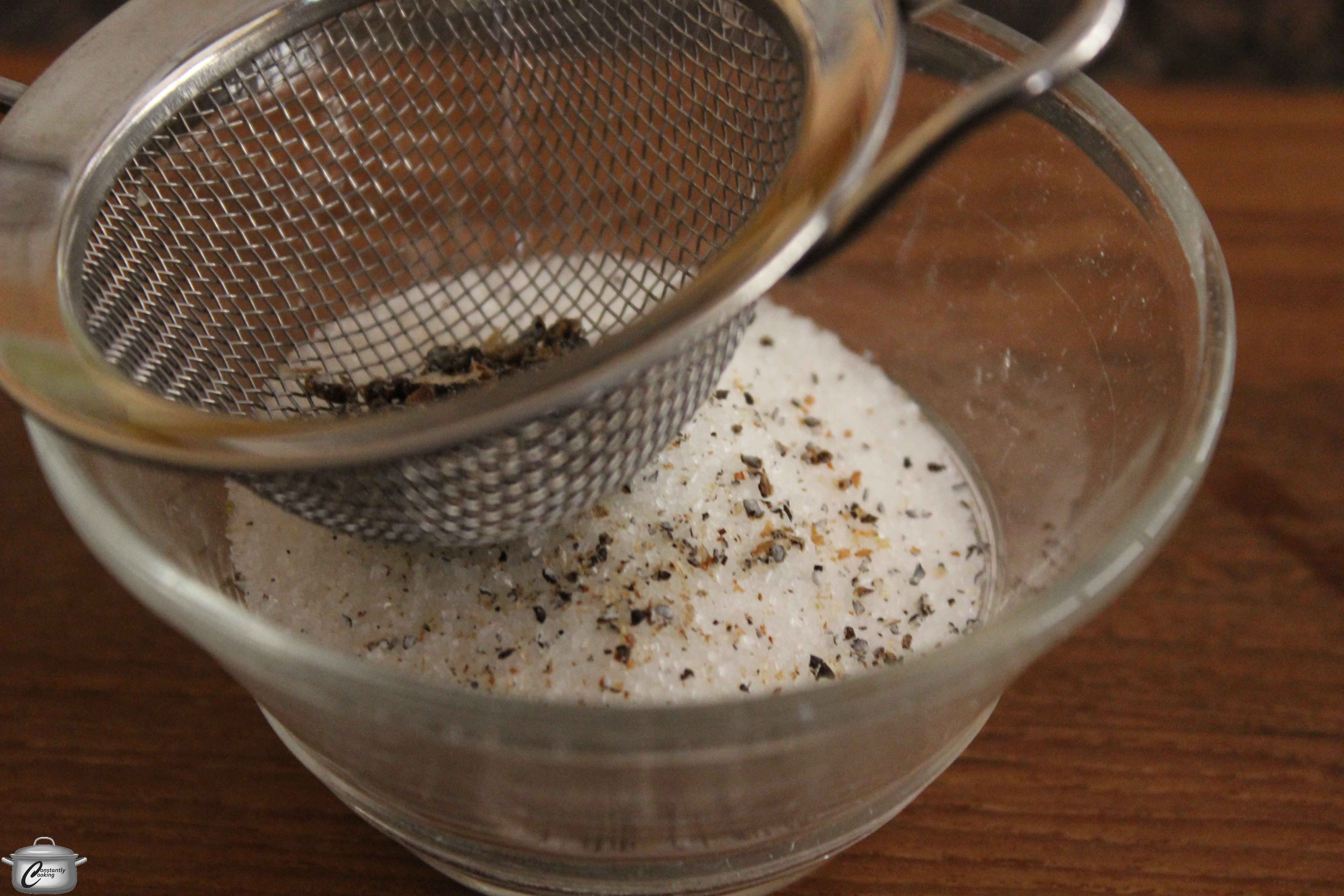 - Keep shaking the sieve until you’ve added about ½ teaspoon of crushed cardamom seeds to the sugar, then set the mixture aside.