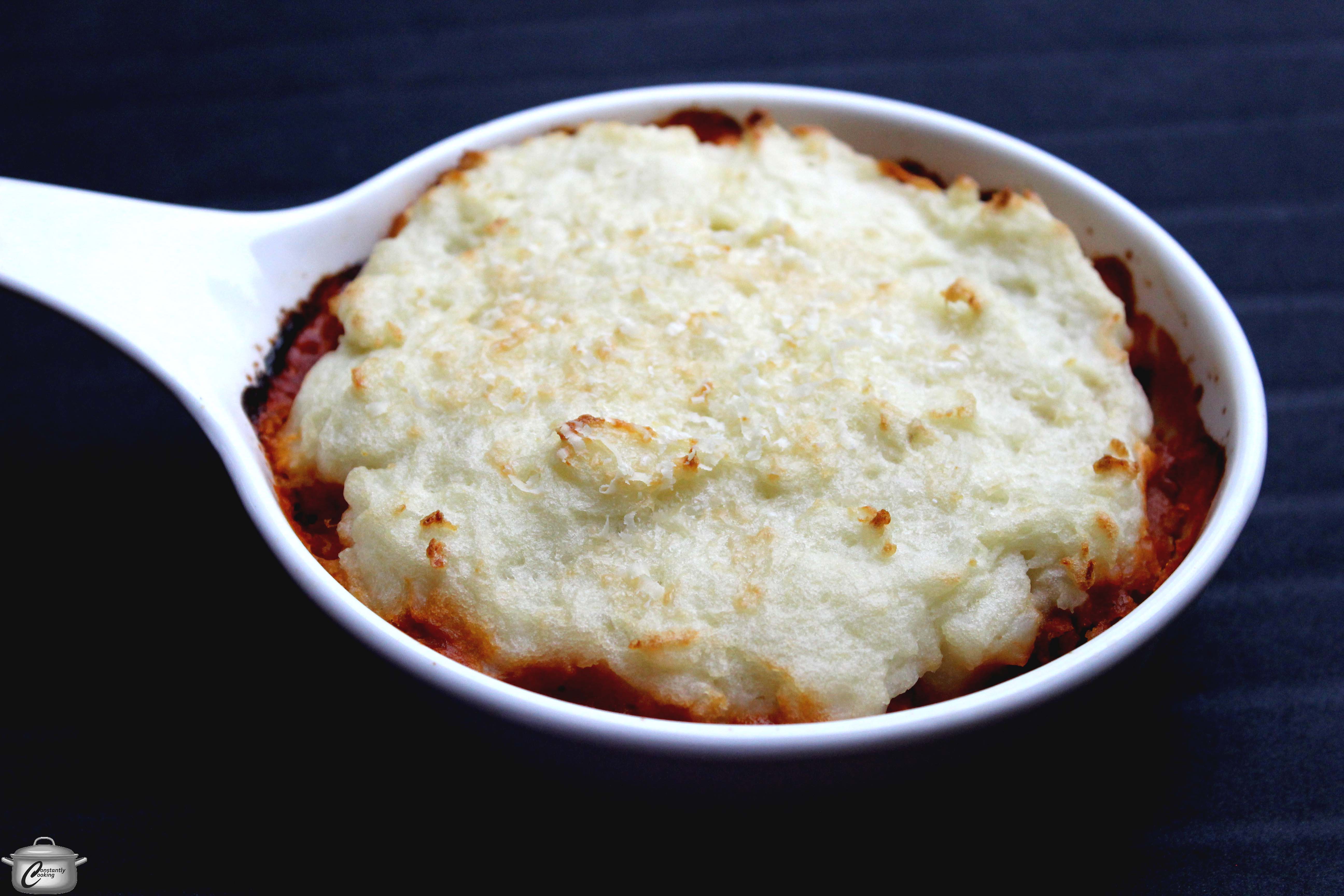 - When ready to serve, heat in a 350F oven until filling is bubbling and the potato topping is just beginning to brown.