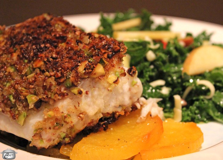 - Place the fish fillet in the pistachio-Panko mixture and press down lightly so the crumbs adhere to the fish. Gently turn the fish over and press again; do the same for the narrow sides. Use your fingertips to add crumbs to coat any bare spots as needed.