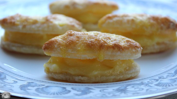 I recently got to spend a few days with my first culinary partner in crime. As university housemates, Karen and I shared a strong enthusiasm for procrastination by cooking, always accompanied by many cups of tea. Being in the kitchen with her this spring brought back so many delicious memories and inspired a number of the recipes I have posted lately, including this delightful dessert. Brightly coloured, tangy flavoured lemon curd is sandwiched between delicate, flaky pastry layers to make perfect little bites that would be ideal for a tea party or as a light dessert after a big meal. The puffs can be baked ahead of time but should be served within an hour of filling. Not quite a cookie, not quite a pie…these little beauties are hard to classify, but easy to make and oh so pretty!