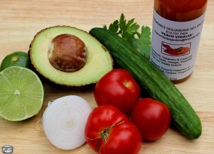 - several dashes of hot sauce such as Camille Desjardins’ Peach Vidalia, to taste