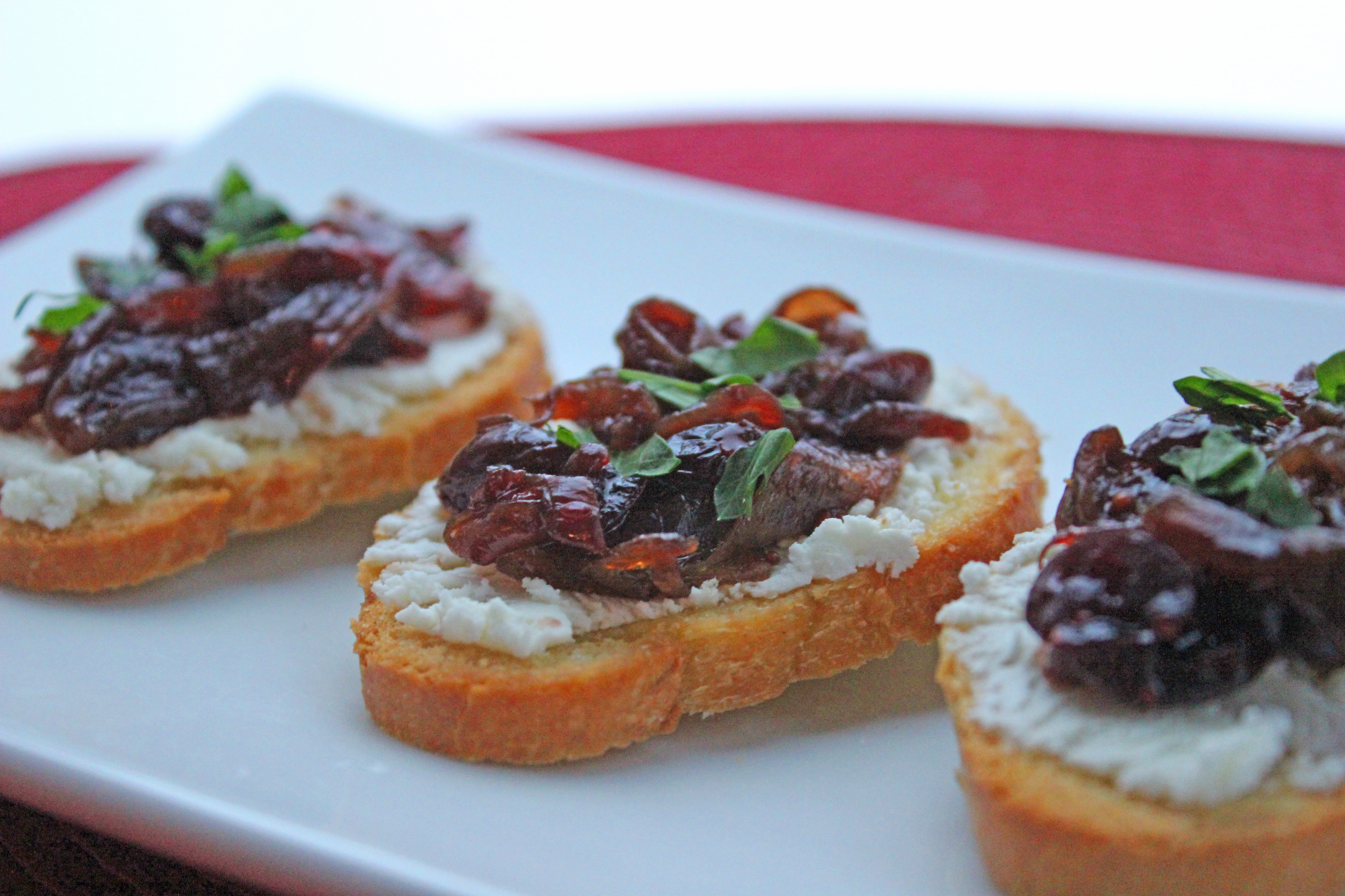 • Serve over crostini (see below) which has been spread with softened chèvre; top each one with about 2 teaspoons of the chutney and sprinkle with chopped parsley.