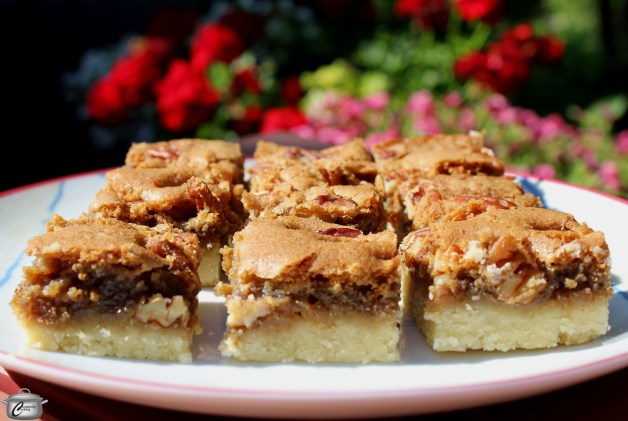 Butter tarts rank right up there as one of the foods considered to be quintessentially Canadian. Their origin is hotly debated – as is the inclusion of raisins – but they are nearly universally loved. If you’re pressed for time, these squares are a great alternative as they are easier to prepare than tarts, with the quick shortbread base a perfect substitute for pastry. I make these squares often because of their simplicity; if you want to go old-school, here’s a fantastic recipe for classic, corn-syrup free butter tarts.