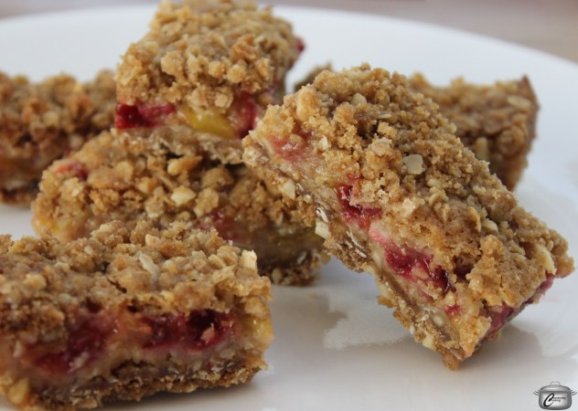 These little beauties are ridiculously tasty, so much so that you might forget they actually include some pretty nutritious ingredients. I was inspired to make them when I spotted some perfectly ripe plums from Warners Farm in my Farmers’ Feast challenge basket from the Ottawa Farmers’ Market. While the plums are a fantastic choice, I am confident the bars would be equally delicious made with any fruit, especially ones with a bit of tartness to them. I made a batch with gluten-free flour and vegan margarine and that was also very successful. I plan to try them with raspberries next. They’re so quick and easy to prepare, I know I’ll be making these often as they were a huge hit with my family.