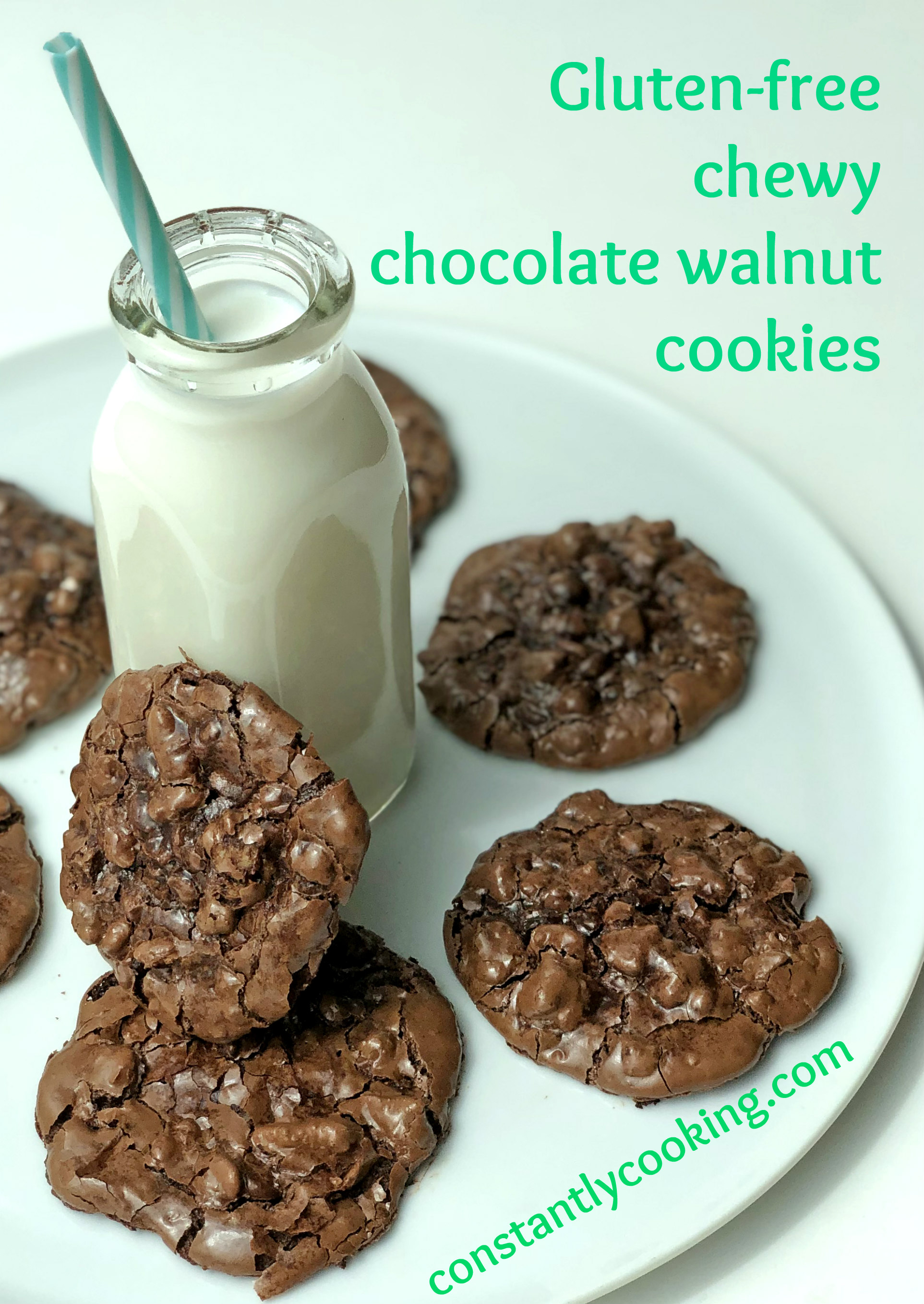 Gluten-free chewy chocolate walnut cookies