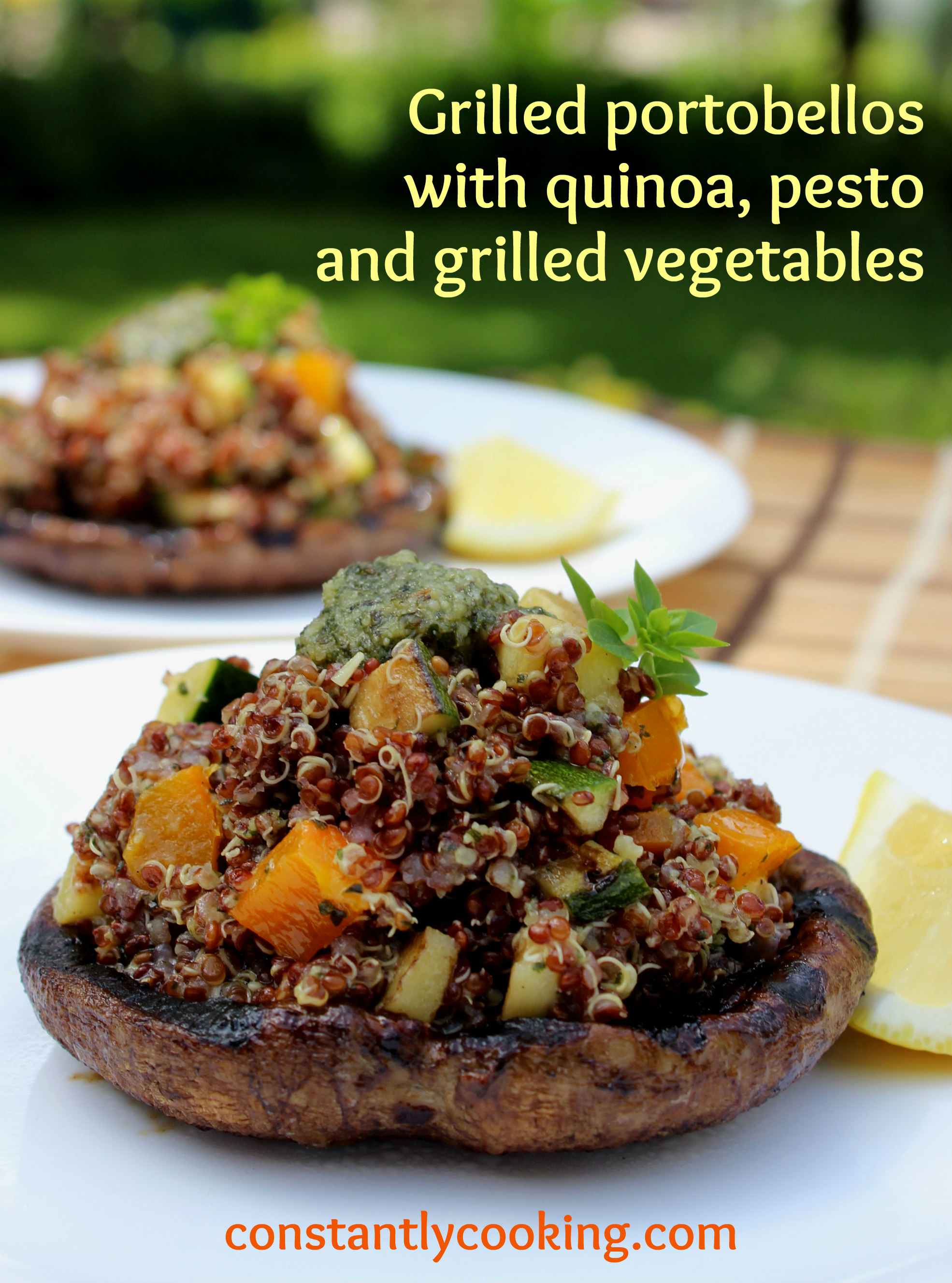 - Place the Portobellos on individual serving places, with the stem sides (undersides) facing up. Heap about 1/2 cup (125 mL) of the quinoa mixture (or more, if you can fit it on) onto each mushroom.