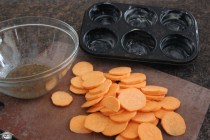 Mise en place for spiced sweet potato stacks