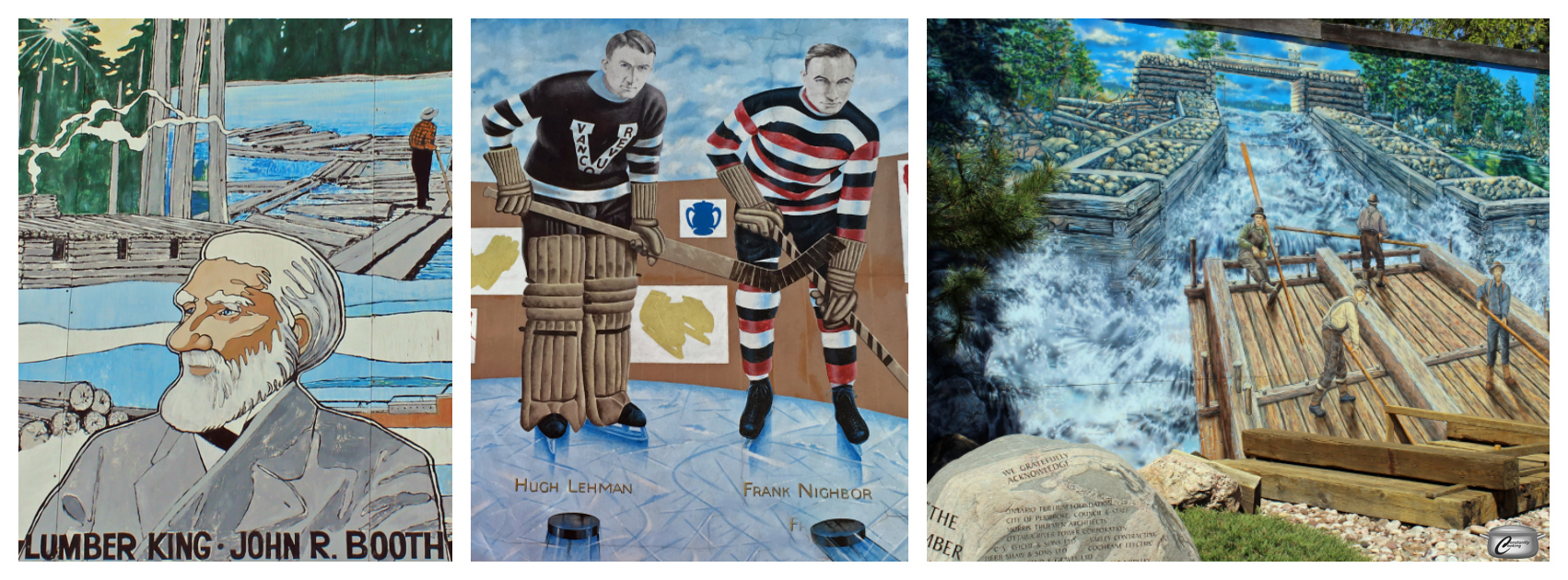 Painted in a variety of styles on the sides of buildings, primarily in the downtown core, the murals are an intriguing way to celebrate the people, experiences and industries that have shaped this Ottawa Valley community. An online map was useful as we strolled along side streets, popped down alleyways and drove to the fringes of town to find them all.