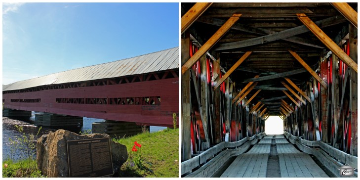 The next landmark I couldn’t wait to find was Fort Coulonge’s Pont Marchand, locally referred to as the red bridge. Built entirely of pine in 1898 for $6000, at 151.59 metres (497.3 feet), it’s the longest covered bridge in Quebec and was designated a historic monument in 1989. We found it closed for repairs; had it been open, I’m sure I could have happily driven back and forth across the bridge a dozen times!