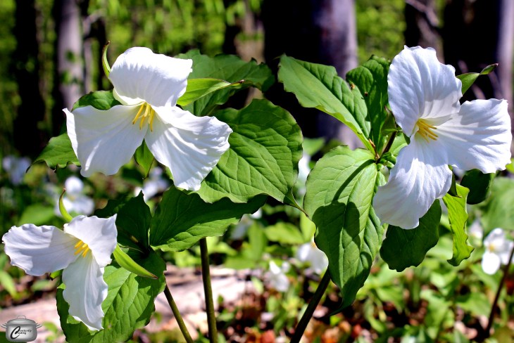 True to the theme of this adventure, once we’d found all the murals, we decided that it was time to go further! We love getting off the beaten track, so we took the nearby bridge across the Ottawa River and headed into the Pontiac region of Quebec, a place we’d heard so much about but had never visited. Aside from the extraordinarily high water levels in this low-lying area, what really struck me on this part of our drive were the roadside forests’ gorgeous carpets of trilliums, extending as far as the eye could see. The sight made me remember going on excursions with my Mom many years ago (in that same Ford Country Sedan station wagon) to look for and photograph wildflowers.
