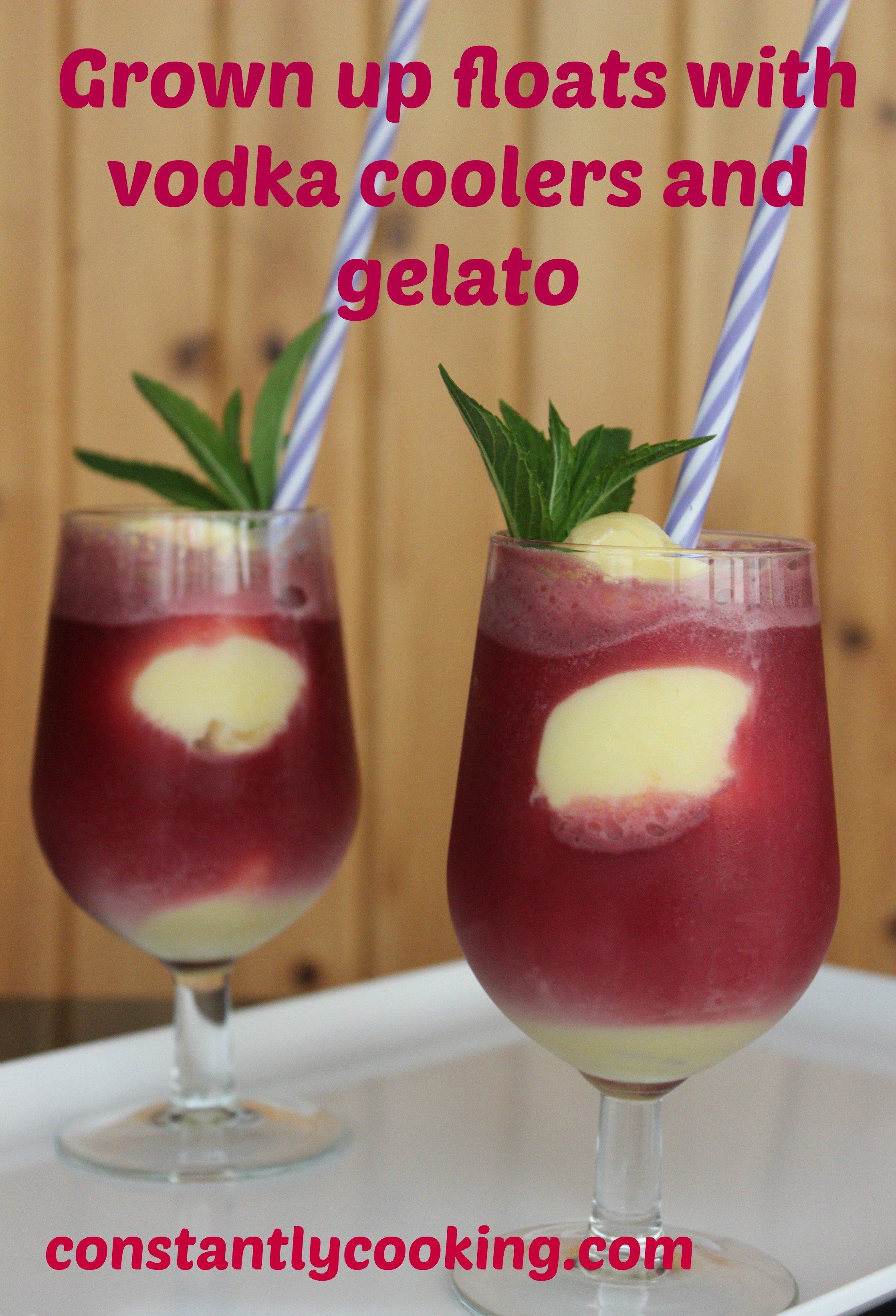 Here’s the best part: these are the easiest drinks ever to prepare. All you need to do is grab your favourite flavour of gelato (or ice cream) and scoop it into tall glasses. Pour the vodka cooler over top and add a sprig of mint to garnish.