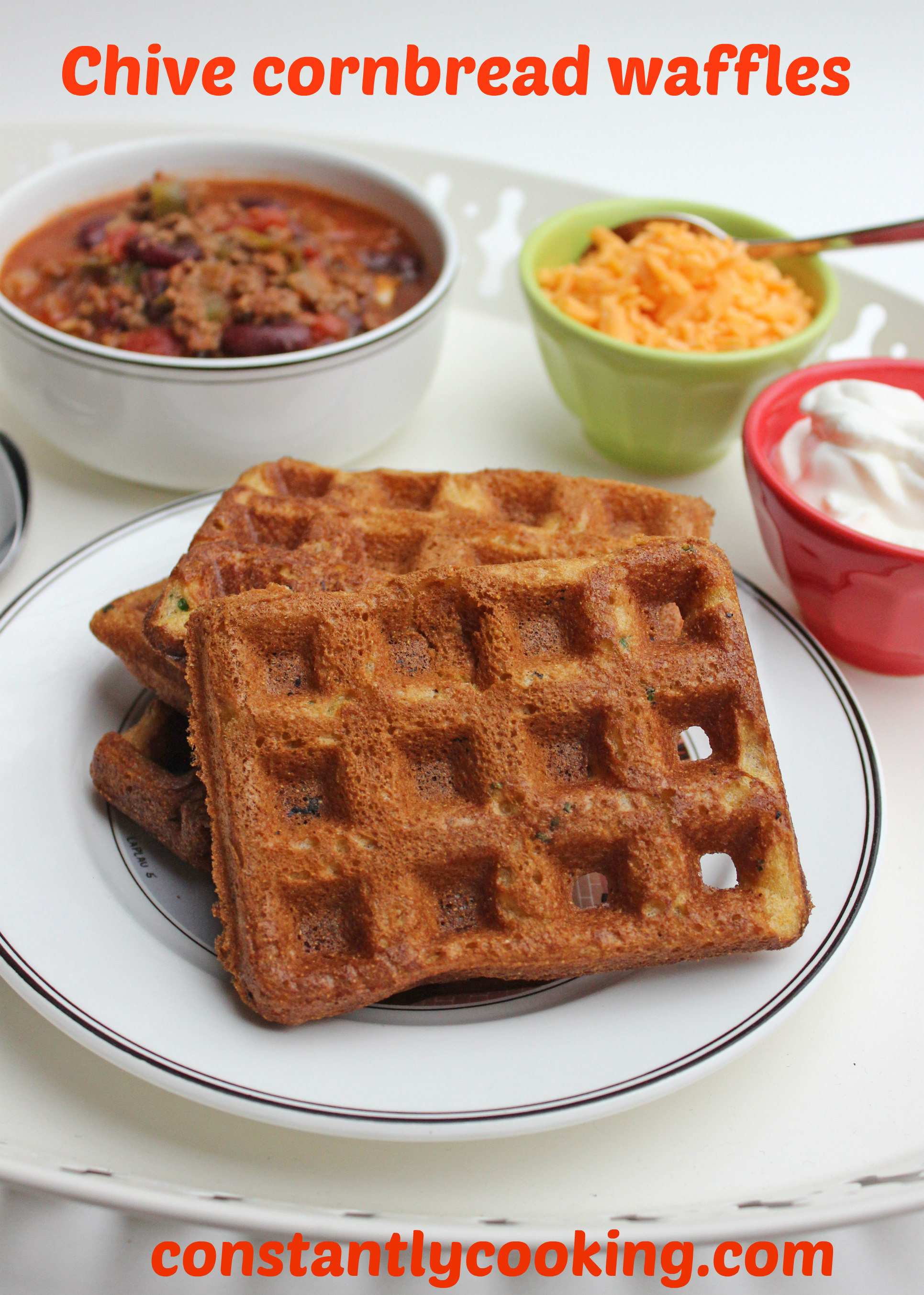 I grew up eating – and loving – cornbread so it was a little disappointing to discover a while back that my husband and kids didn’t really enjoy it. It took a while to figure it out, but when I noticed they only cut pieces from the outer edges of the pan, I realized it was the crispy bits that they really enjoyed. The solution? Pour that cornbread batter into a waffle maker. The result: super easy and fast cornbread waffles that offer the perfect amount of those coveted crispy edges. If your family likes things spicy, you can add up to 2 tablespoons of drained, finely chopped pickled jalapenos to the batter. If you’re wondering about chili recipes, here are two of my favourite: a quick vegetarian version and a yummy Texas-style chili.