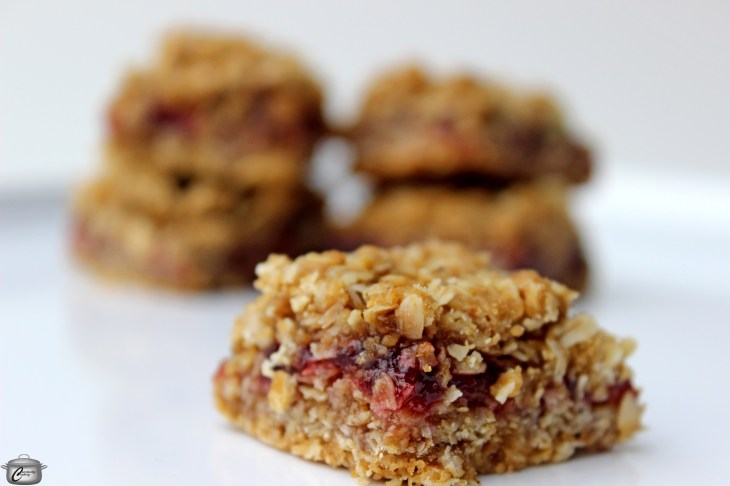 I don’t know about you, but whenever I eat fruit crisp (or crumble), my favourite part is the topping. Crunchy oats, sweet brown sugar and all that buttery goodness….what’s not to love? I decided to transform traditional crisp or crumble topping into a new delight and I have to say, these bars are phenomenally tasty. Alternatively, spread a layer of very thinly sliced apples dusted with sugar and cinnamon for another variation but the seedless jam was just so easy I couldn’t resist making the bars this way. You can easily make your own oat flour by pulsing rolled oats in a blender or food processor. If you don’t wish to make these bars gluten-free, substitute with all-purpose flour.