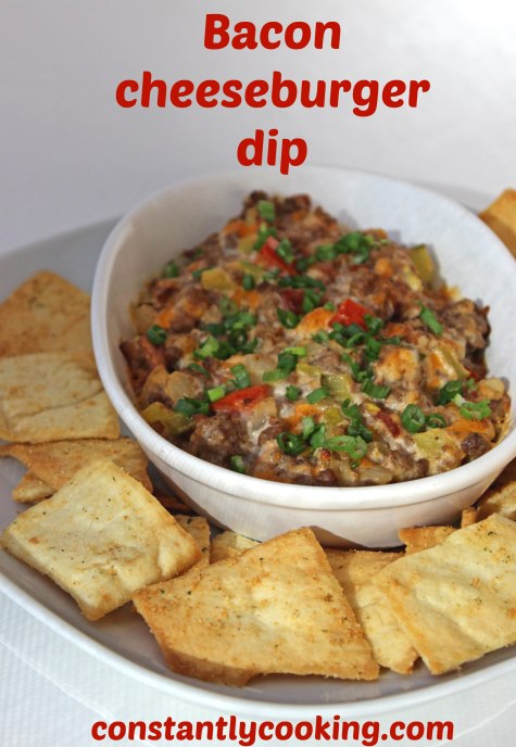 When presented with this dish for taste testing a few days ago, my menfolk were rendered speechless, in a good way. Meaty, cheesy and full of flavour, it’s scrumptious and satisfying and really does taste exactly like a bacon cheeseburger! It will definitely be on our Superbowl menu this year, and possibly for many years to come. I like to prepare individual-sized dishes of the dip to make it easier to serve and enjoy.