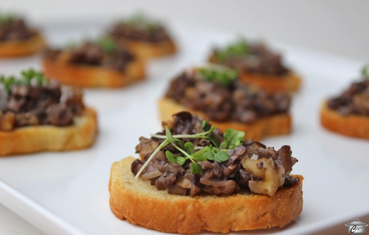 Appetizer: Mushroom and walnut ‘caviar’ on herbed crostini