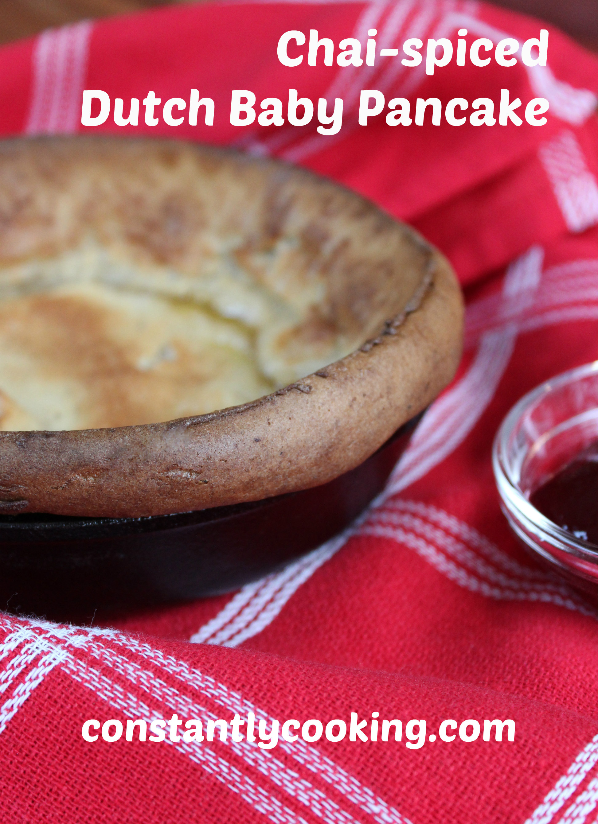 Similar in texture to popovers or Yorkshire pudding, Dutch babies are a great alternative to traditional pancakes. The batter puffs up beautifully while baking, giving the Dutch baby a delicate texture to match its light flavour. You can vary the spices to suit your tastes; my family just loves this chai-inspired version. You can prepare the batter the night before, but be sure to whisk it well just before adding it to the hot pan.