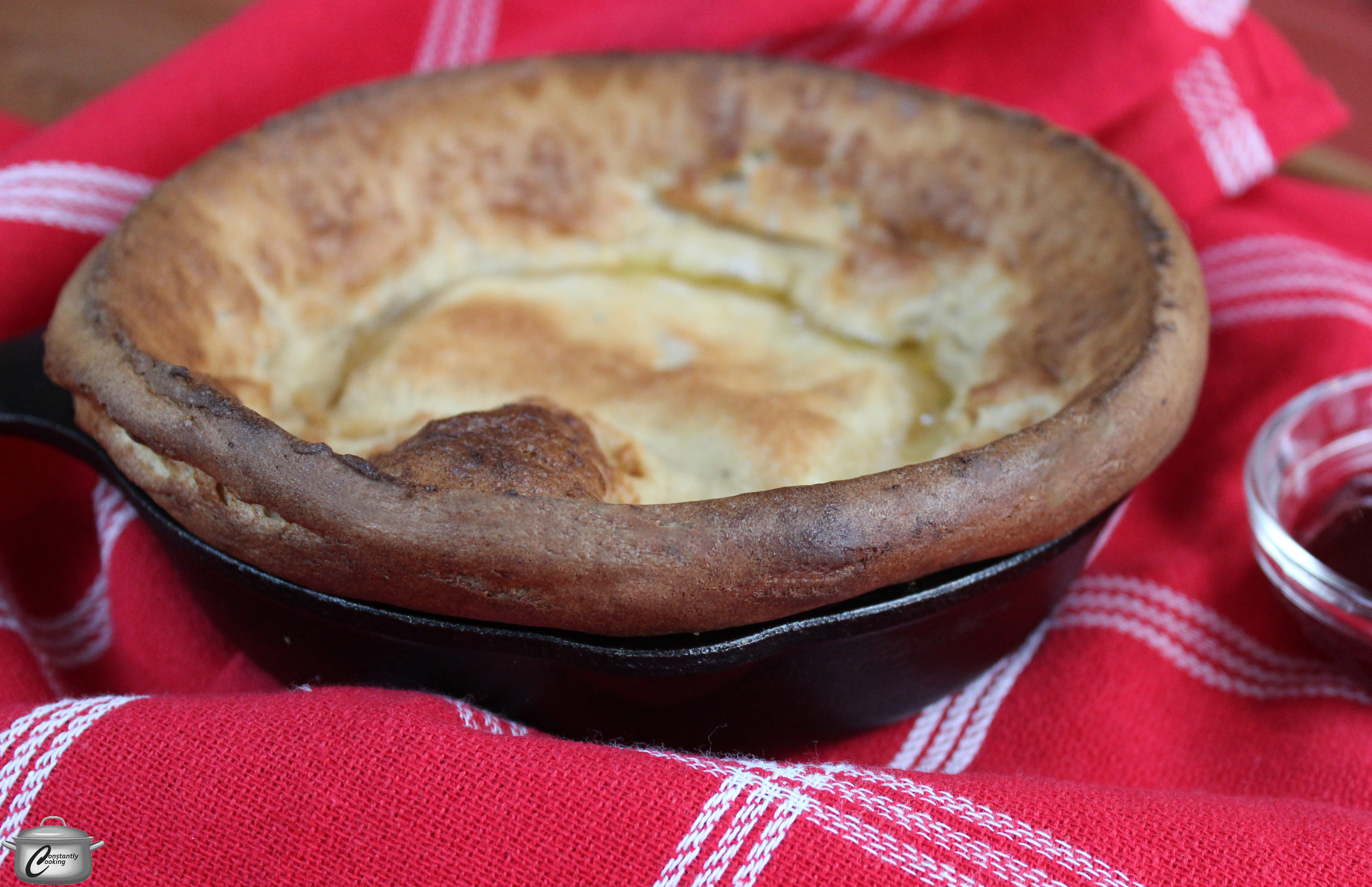 Note: you can also use this recipe to make three individual Dutch babies if you have smaller (6 inch) cast iron skillets. Divide the batter evenly among the hot, buttered skillets and bake for 15 – 18 minutes.