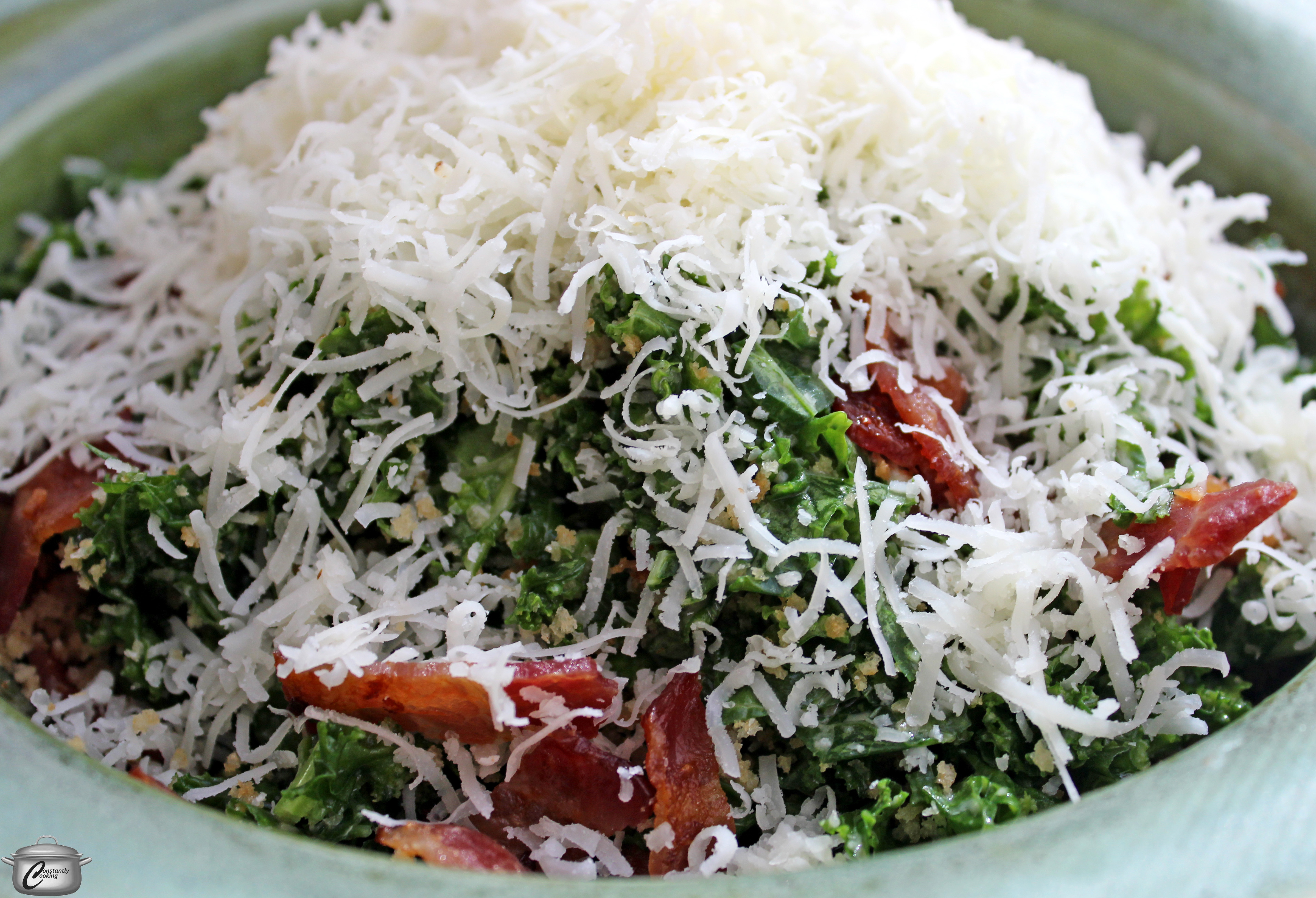 I LOVE this salad! It tastes like Caesar salad, but much healthier with the kale and without the mayo. I made sure to cook extra bacon, since I knew there would be some “tasting” before it made its way into the salad, which probably negated the health benefits! Will be making this often – thanks!
