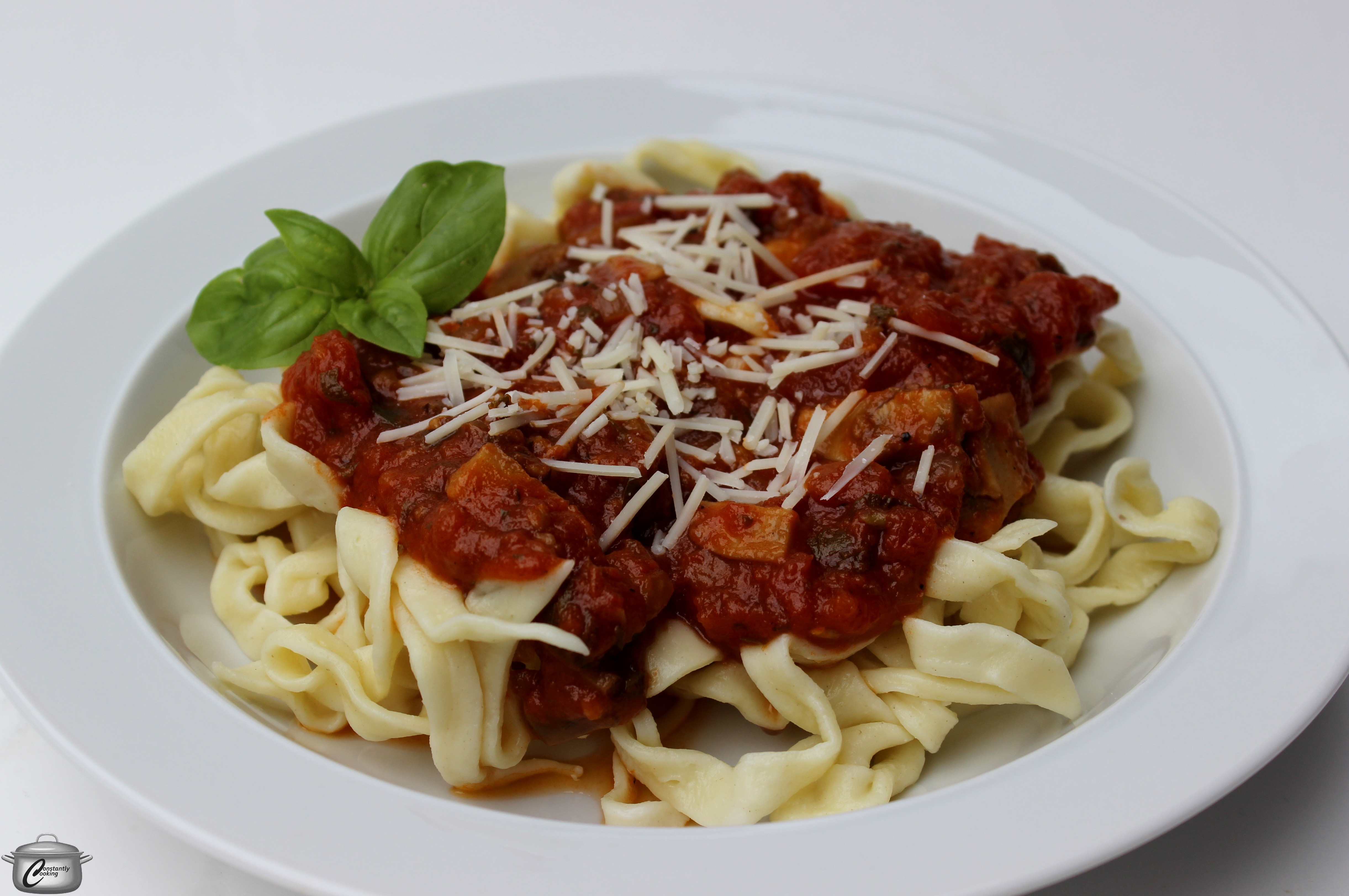 - Serve sauce over hot cooked pasta, garnished with parmesan and chopped fresh basil.