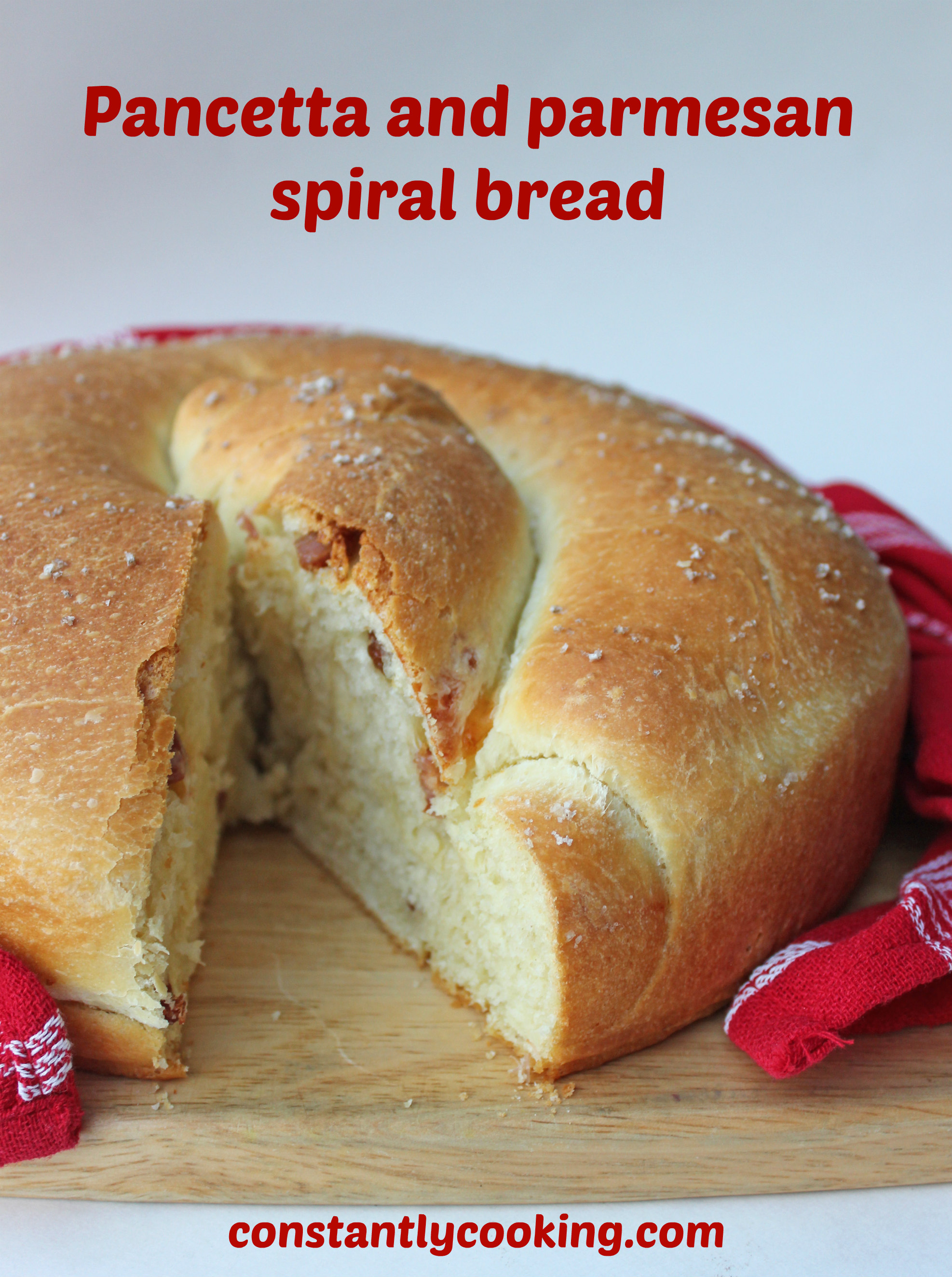 This rich, brioche-style bread is incredibly delicious and super versatile too. While it’s absolutely amazing fresh out of the oven, my taste testers have decided it’s even more delightful the next day, toasted and buttered, possibly with a fried egg on top. No matter how it’s served, it’s a loaf that will be the star of the show at any meal. You can make and bake it all in the same day if you like, or prepare the bread and let it nap in the fridge overnight before baking. It’s terrific made with pancetta, but double-smoked bacon would be ridiculously tasty in this as well. Next time I might even go wild and add some caramelized onions too.