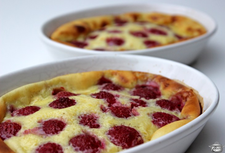 • Bake the clafoutis until the custard is just set; test by poking the tip of a sharp knife in the centre of the dish; if it emerges clean, the clafoutis are done – about 30 – 35 minutes.