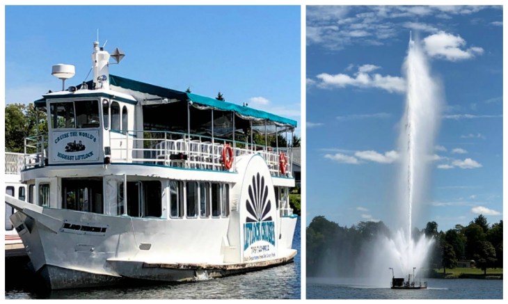 What a pleasant surprise the Lift Lock Cruise experience was! Despite having visited Peterborough on several occasions in the past, we had never heard of the lift lock so really didn’t know what to expect. We had an idea, however, that we were in for something fun immediately upon boarding, when we met the personable Captain Grant. He provided very engaging – and often humorous – narration about the history of Peterborough and the development of the Trent-Severn waterway as he deftly piloted the vessel through Little Lake, the Otonabee River and the locks. It was fun to watch the water rise as we sat inside Lock 20 (Ashburnham) and then we proceeded past the efficient swing bridge.