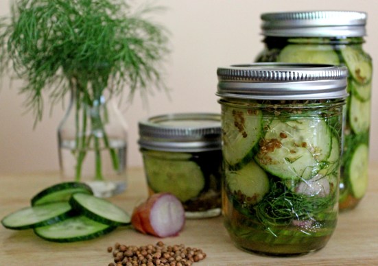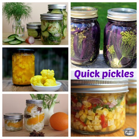 When I was growing up, my mom had eight hungry people to feed every day, not to mention the frequent guests welcomed into our home. One of her secret weapons was our huge vegetable garden and everyone in the family was expected to pitch in with planting, weeding and harvesting. Of course, this was a small price to pay for getting to enjoy the freshest, most delicious food. Her other secret weapon was preserving this bounty and I loved helping her transform bushels of fruit and vegetables into vibrantly-hued jars of jams, pickles, chutneys and relishes each year. While I have continued this tradition in my own home on a much smaller scale, I know that many people avoid making pickles because they feel it’s too much work. That may be true for large batch recipes that require processing the jars in hot water to make them shelf stable for many months, but did you know there is another way to make pickles? Sometimes called refrigerator or ‘quick’ pickling, this method means you can just make just a jar or two or three at a time, and store them in the fridge. Below are some of my favourite quick pickle recipes.