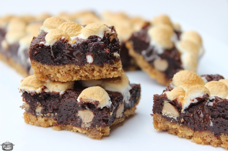 Rich, gooey and deliciously decadent, these brownies are one of the most wonderful things I have ever baked. Putting a graham cracker crust under my favourite chewy brownie recipe, throwing in some salted caramel baking chips and popping a layer of marshmallows on top really takes this dessert to the next level.