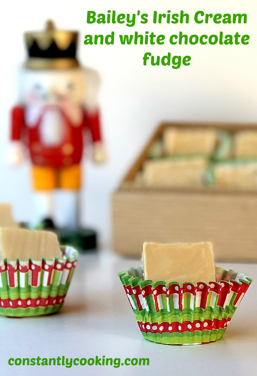 I am not a big liqueur drinker, but I do associate the taste of Bailey’s Irish Cream with the holiday season. Did you know it’s really delicious when added to creamy salad dressings, especially if you have some strong flavours (radicchio, fennel or cabbage) to balance it out? I decided to try making fudge with it and am happy to report it was a very tasty experiment. Please note that an accurate candy or instant-read digital thermometer is essential for this recipe.