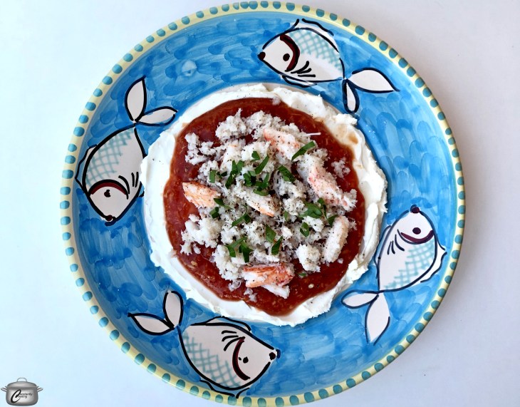 I always make sure I have a couple of cans of canned crab meat, some jars of seafood cocktail sauce and tubs of spreadable cream cheese on hand. This layered dip recipe is an oldie but a goodie – spread cream cheese on a plate, pour seafood cocktail sauce over in a thin layer, then top with crab meat (and chopped parsley if you have it on hand; a squeeze of fresh lemon juice is great, too). Serve with crackers.