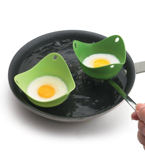 These heat resistant silicone pods make it easy to cook eggs cleanly and consistently. Apply a little butter or oil, then crack an egg into each pod and place them a pan of boiling water. In less than 5 minutes, you’ll have perfectly poached eggs (increase time for solid yolks) that you can easily pop out of the pods. Each pod easily holds any size egg up to extra-large. They are also very convenient size for melting chocolate or preparing small batches of custard. Sold at Lee Valley Tools; $14.90 for a pair.
