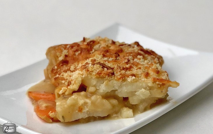 Confession time: I’ve never been a big fan of rutabagas (the proper name for yellow-fleshed turnips). I love the little white turnips but haven’t found too many ways to use rutabagas…until now. Working with a bountiful crop of root vegetables in my recent Farmhouse Food Harvest Box inspired me to think about some new ways to enjoy local late fall and winter produce; this recipe is a result of some concerted brainstorming. I’ve often made vegetable gratins with a cream sauce, but this French onion soup version is so much more flavourful. I loved the looks of surprise and delight on my guests’ faces when they took their first bites. If you like this dish, you may also enjoy my French onion soup pasta casserole.