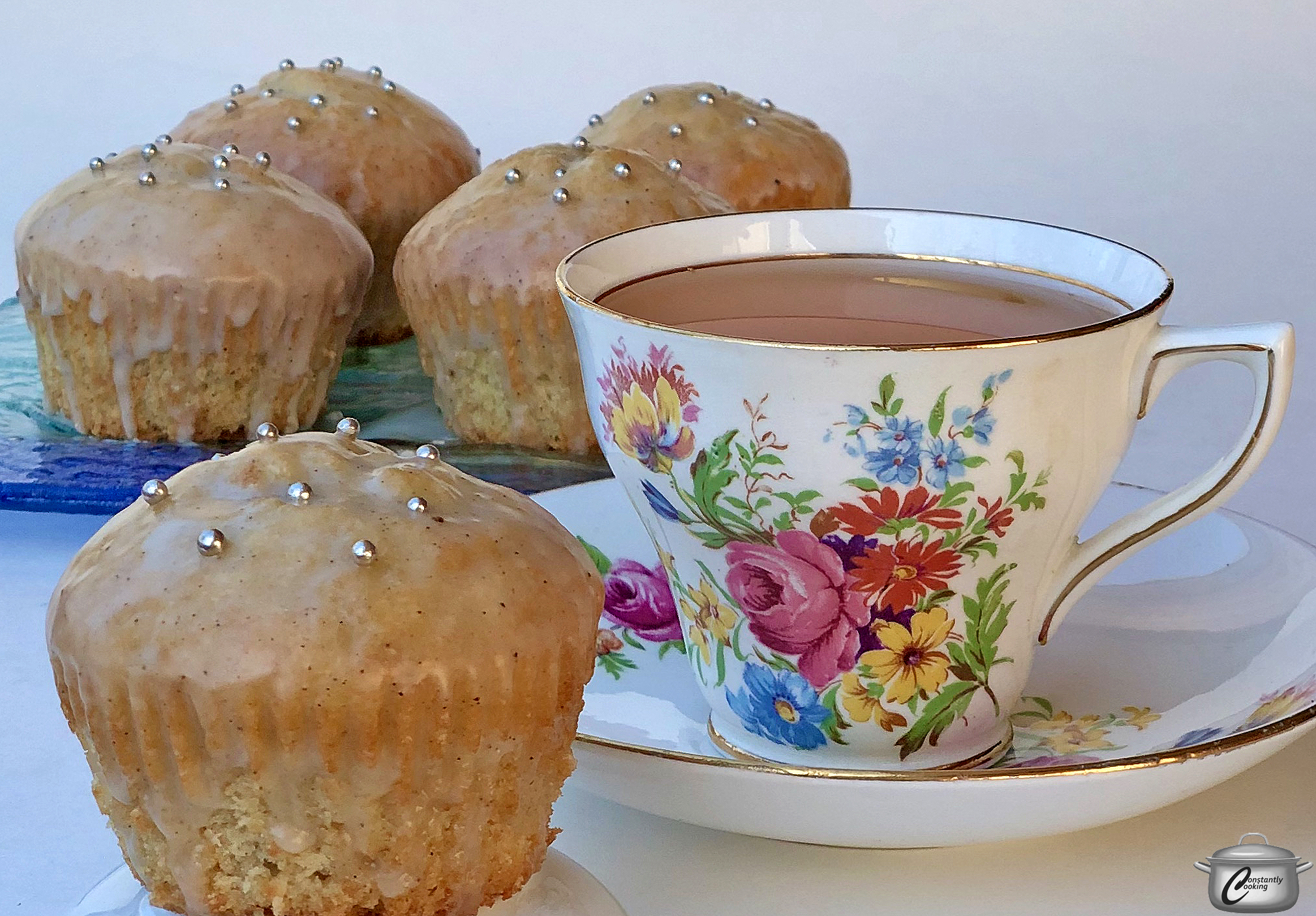 I’m not a big fan of light cupcakes that taste like sugar and air, but I do always enjoy rich dense ones. If I’m going to indulge in a sweet treat, I want it to be satisfying. These tea cakes – a step up from cupcakes – are perfect for a tea party, and not just because they’re made with Earl Grey tea infused butter. I came up with this recipe to surprise my husband, who is a huge fan of the popular London Fog beverage, make from the same tea, with steamed milk and vanilla syrup. He gave the edible version two thumbs up.