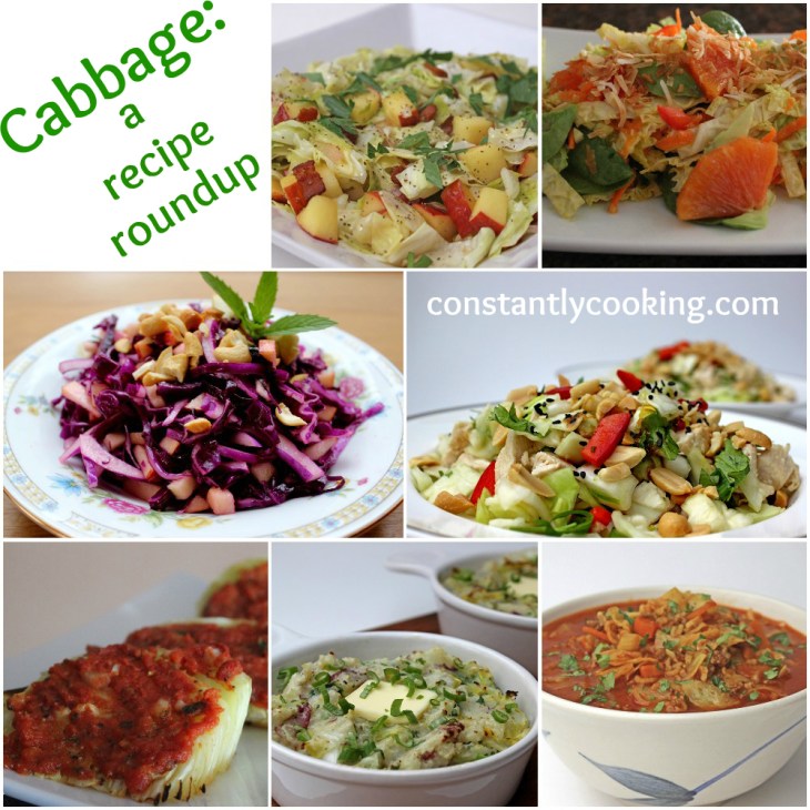 I purchase cabbage a couple of times each month as it’s such an inexpensive, versatile vegetable. I love eating it raw as I find its crisp texture really satisfying; when cooked I love how tender and sweet it can become. On top of its great flavour, cabbage is also an excellent source of vitamin C, vitamin K and dietary fibre. While I love coleslaw, I also enjoy dreaming up innovative new ways to enjoy cabbage. Here are a few of my favourites (and if you really want some of my slaw recipes, the search function on this site will take you to some very tasty ones). Click on the titles to jump to the recipes.