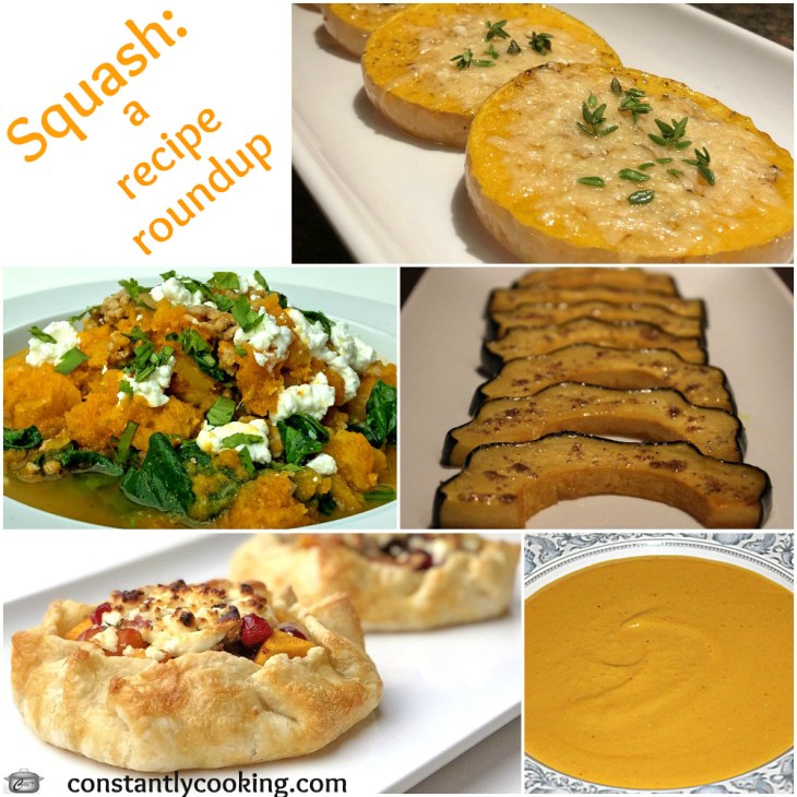 We cook with squash a lot over here in the Constantly Cooking kitchen. It’s economical and sometime the butternut squashes in particular are so huge they can be used to make several meals. I find them the most versatile but I also love the flavour of acorn squash too. Squash is so nutritious and fibre-rich that just three tablespoons of cooked squash equals one serving of vegetables, if you’re keeping track of that sort of thing.  Here are some of my favourite ways to prepare squash (click on the titles to jump to the recipes).