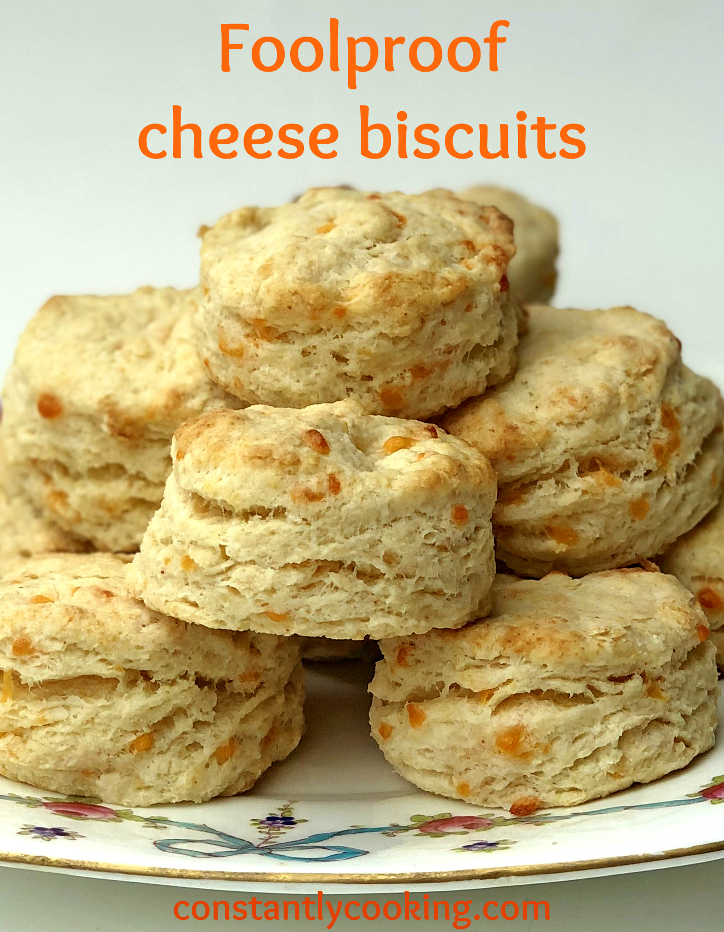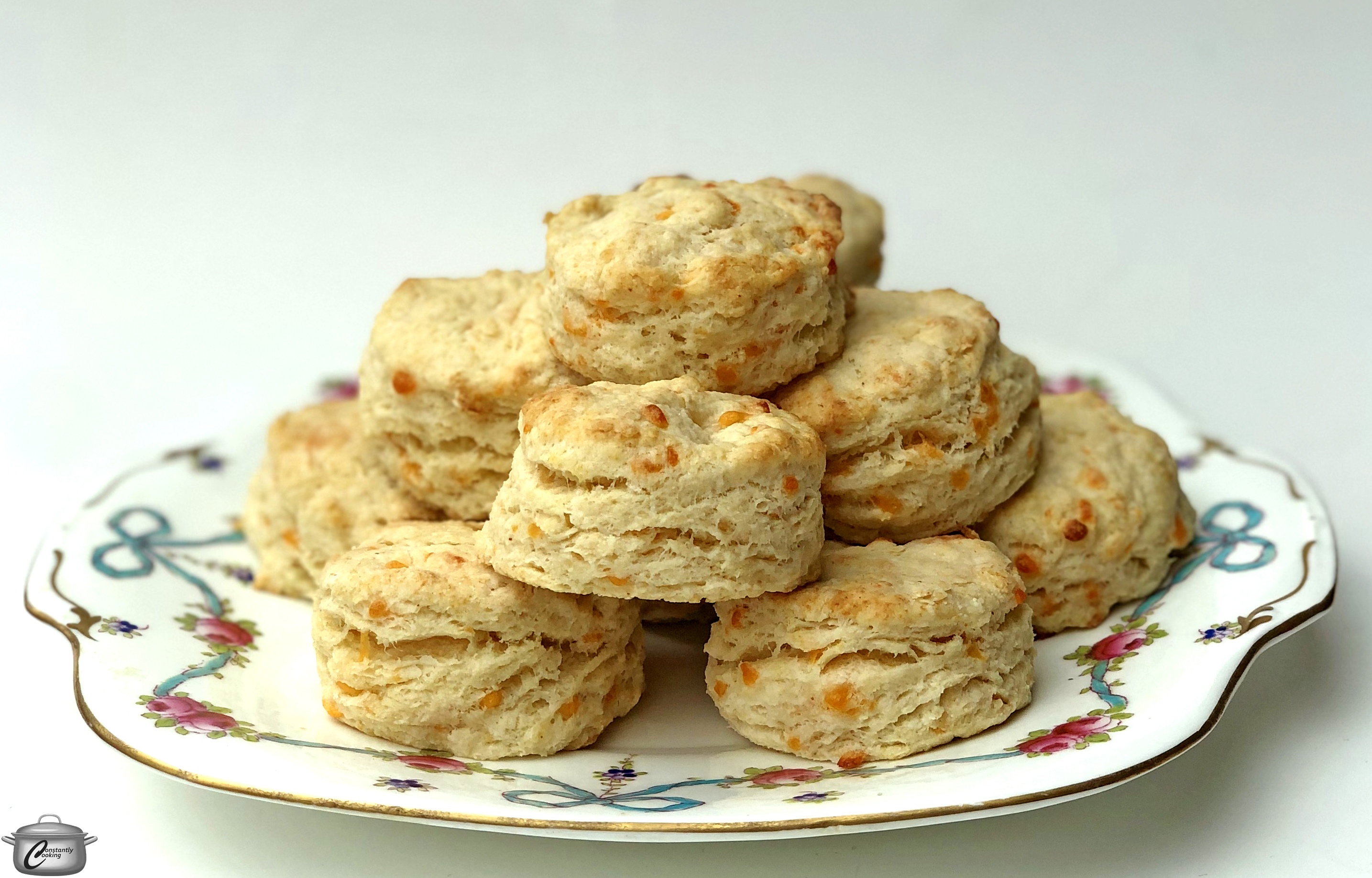 I spent years trying to figure out why I couldn’t make cheese biscuits as well as my mother-in-law. After all, she had given me her recipe… or so I thought. Well, it turns out that “mix all together, cut into circles and bake in a hot oven until done” is not really enough information to make a light, flaky delicious biscuit. After much tinkering, I’ve come up with what I feel is a superior method to her abbreviated one and the resulting biscuits are, indeed, delicious. You can mix together the dry ingredients, butter and cheese ahead of time and transfer to an airtight container to store in the refrigerator or freezer. When ready to bake, it will take just a few moments to stir in the buttermilk and cut the biscuits so they are ready for the oven.