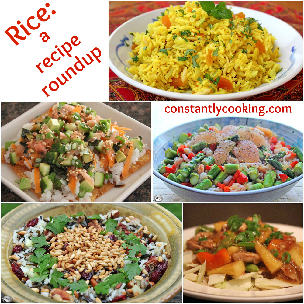 I grew up eating rice often, but it was a real epiphany when I learned that there was so much more to enjoy about rice than the blandness of Uncle Ben’s out of a box. I cook rice often now, sometimes as a main dish and sometimes as a side. I’ve also learned how to prepare brown rice that is soft and fluffy – the secret is toasting the raw rice in a broad pan over medium heat for about 5 minutes before cooking. Here are some of my favourite rice recipes; click on the titles to jump to each one.