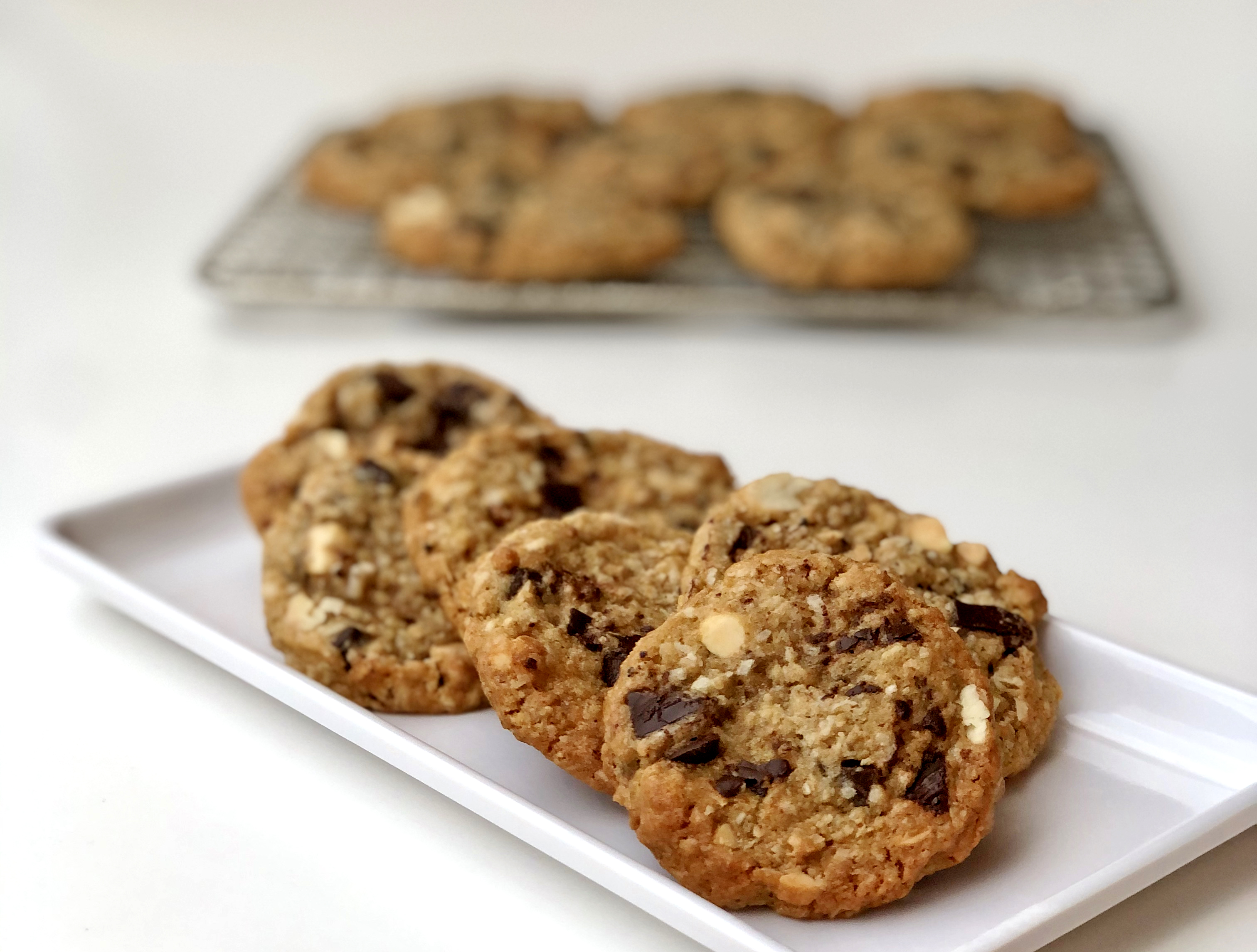 I know, I know…I’ve said it before when I’ve presented a new cookie recipe. I’ve told you it’s the ‘best ever’ or ‘my all-time favourite’. That may have been true at the time, but I’m here now to tell you that these beauties truly are the best ever and my NEW all-time favourite. This is the latest in my new Recipe of the Week series that I am creating for Ottawa At Home magazine, where I serve as food editor, and it’s a real winner. Healthy-ish thanks to the oats and whole wheat flour, they’re also loaded with chocolate, coconut and peanuts, making them a real flavour party.