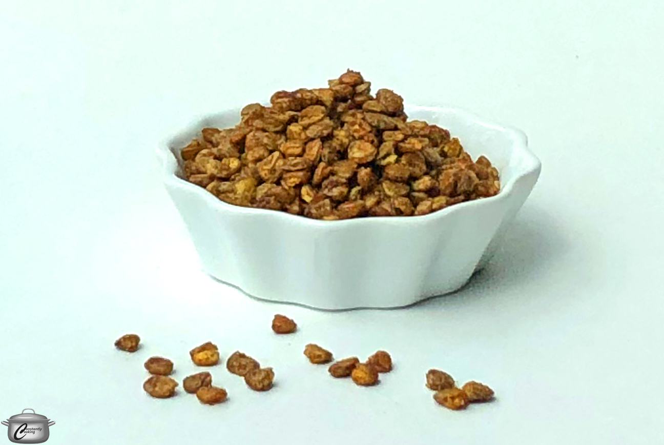 I love sprinkling these crunchy treats on all sorts of dishes such as soups, salads and casseroles – I sometime even make a cinnamon-ginger version to top my morning oats. It’s easy to switch up the flavour profile to make it sweeter or more savoury, depending on your tastes or intended usage (chili-garlic would be a great combination, for example).