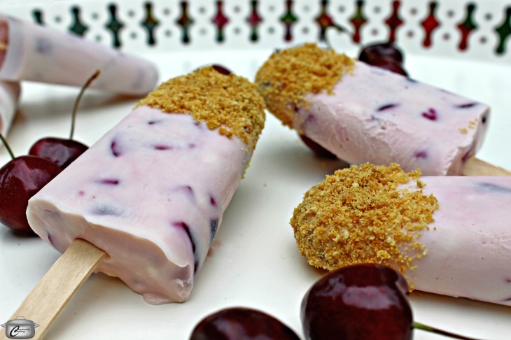 I think it’s a lovely coincidence that when the first fresh cherries of the season arrive in early May, the ‘outdoor living’ season is also about to begin. I’m a huge fan of sweet cherries – did you know they’re actually nutritional powerhouses that are packed with vitamins and antioxidants? One of my favourite desserts of all time is cherry cheesecake and that one time I got caught sneaking a piece straight out of the freezer was the inspiration for this recipe. The simple cheesecake mixture, studded with chopped fresh cherries, freezes beautifully and the light coating of graham cracker and butter ‘crust’ just seals the deal. It’s a flexible recipe as well and can be easily be made to accommodate gluten-free, dairy-free or vegan diets. If you need me, I’ll be in the backyard, eating these all summer long.