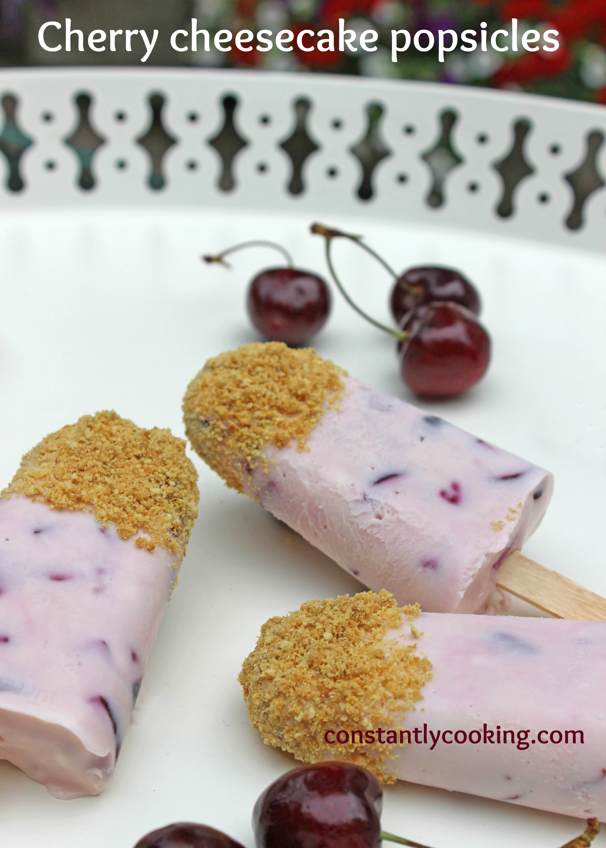 I think it’s a lovely coincidence that when the first fresh cherries of the season arrive in early May, the ‘outdoor living’ season is also about to begin. I’m a huge fan of sweet cherries – did you know they’re actually nutritional powerhouses that are packed with vitamins and antioxidants? One of my favourite desserts of all time is cherry cheesecake and that one time I got caught sneaking a piece straight out of the freezer was the inspiration for this recipe. The simple cheesecake mixture, studded with chopped fresh cherries, freezes beautifully and the light coating of graham cracker and butter ‘crust’ just seals the deal. It’s a flexible recipe as well and can be easily be made to accommodate gluten-free, dairy-free or vegan diets. If you need me, I’ll be in the backyard, eating these all summer long.