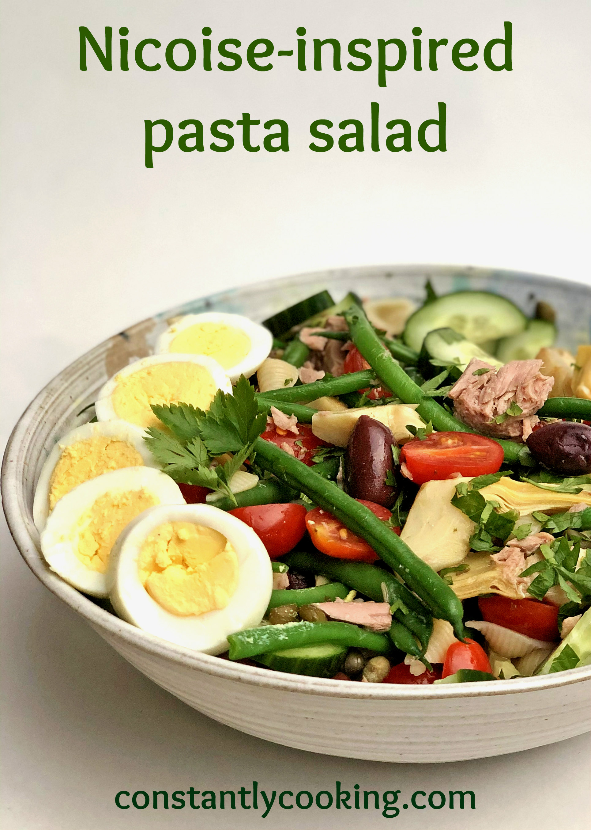 This is a super-flexible recipe that’s ideal for hot-weather dining as it’s terrific at room temperature and so quick and easy to prepare. You can switch up the vegetables if you like – adding in chopped peppers, diced avocadoes or sliced green onions, for example – and use gluten-free pasta if you wish. Add in feta or chopped anchovies if either of those are your thing; skip the eggs and tuna for a vegetarian or vegan version. To make getting this meal on the table even speedier, you can cook the eggs, prepare all the vegetables and make the vinaigrette the night before. Refrigerate until you’re ready to assemble the dish and all you’ll need to do is cook the noodles, drain the tuna and toss it all together! if you’re looking for a more traditional Salade Niçoise recipe, here’s my take with smoked salmon; I’ve also assembled a collection of some of my other favourite pasta salads.