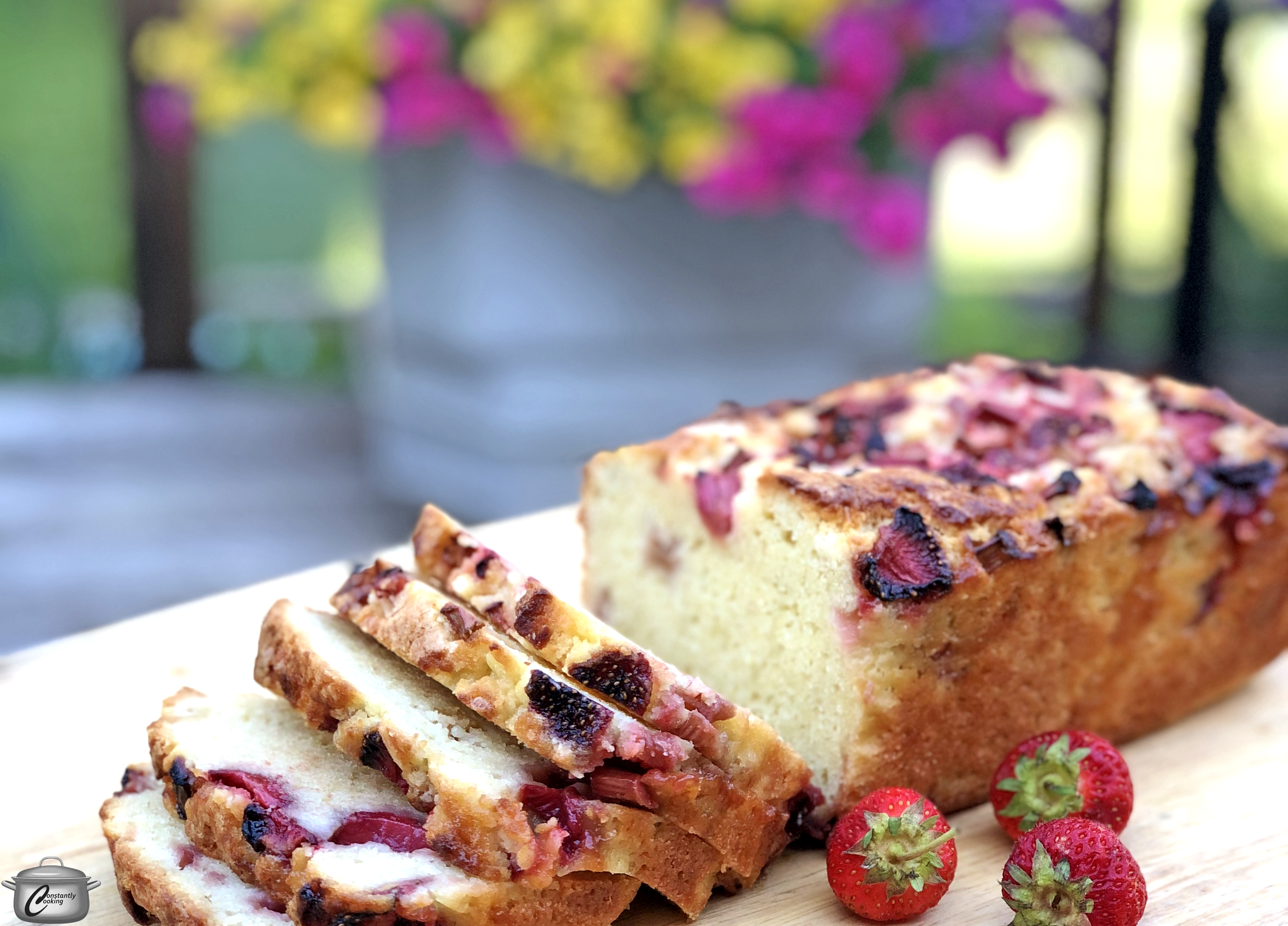 I just cannot get enough of fresh fruit when it’s in season. I’ve been making the most of this year’s bountiful rhubarb and now, with local strawberries just becoming available, I’ve been feasting on those as well. This loaf vanished so quickly after I made it the other day; I think my husband cut himself a little slice every single time he walked through the kitchen. If you prefer, you can also bake this recipe up in muffin format – I’ve included two sets of baking time below. For those of you who love this fruit combination as much as I do, you might also enjoy these strawberry-rhubarb scones or strawberry-rhubarb panna cotta.