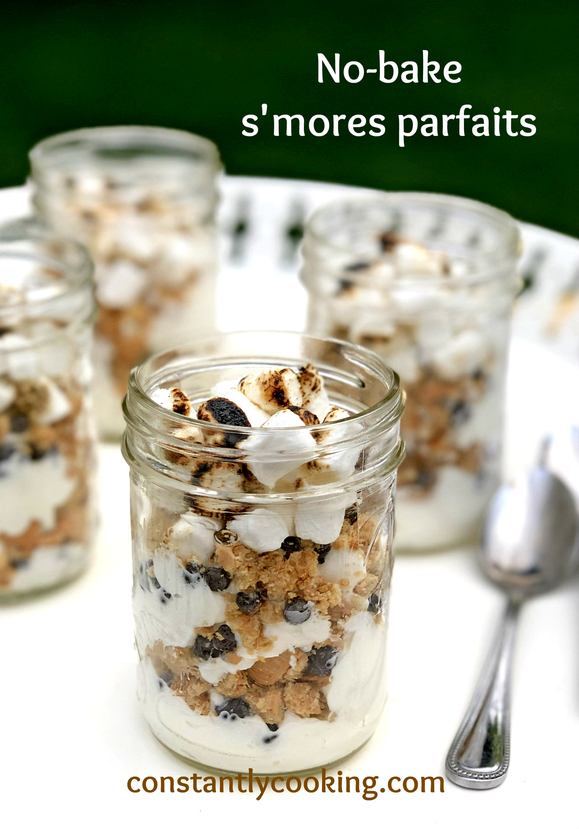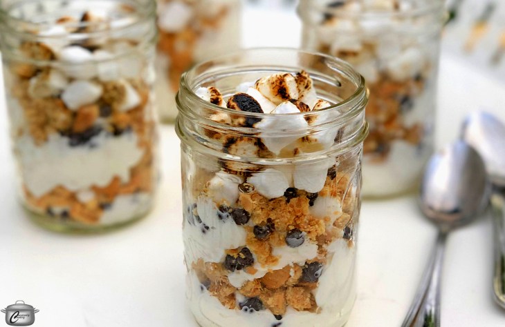 Serving individual portions of dishes in canning jars will undoubtedly continue to be as popular as ever this summer and these desserts are a great option. They’re easy to make, delicious and super festive. Replacing the traditional graham crackers with crushed maple sandwich cookies gives them a uniquely Canadian flavour! If you’re as big a fan of s’mores as I am, you might also enjoy this caramel crunch s’mores dip or these decadent s’mores brownies. I created this recipe for Ottawa At Home magazine, where I serve as food editor.